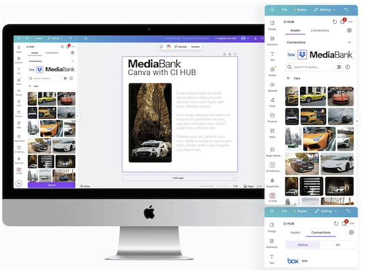 Med MediaBank CI-HUB Connector kan du importera det du behöver direkt till Canva!